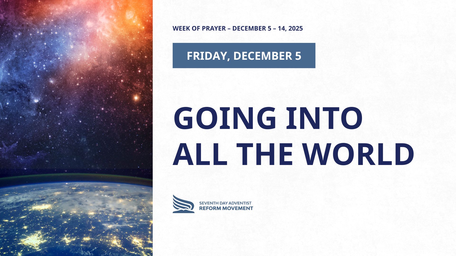 The Seventh Day Adventist Reform Movement Church is a worldwide religious organization based on the teachings of the Bible. We organized in 1925 and are now in over 100 countries around the world. The Reform Movement exists to impact the world, showing God’s love in a practical manner and drawing the world’s attention to the restoration of divine principles. For more information, please visit www.sdarm.org